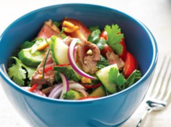 - After cooking cut the beef into smaller pieces and place in a salad bowl.