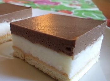 - Dunk the petit beurre biscuits in milk and arrange in a dish (one or two layers). First pour the white filling and then the dark filling over the biscuits.