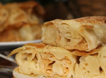 - With flour and the appropriate amount of warm water make the dough for the pie. Add a teaspoon of salt.