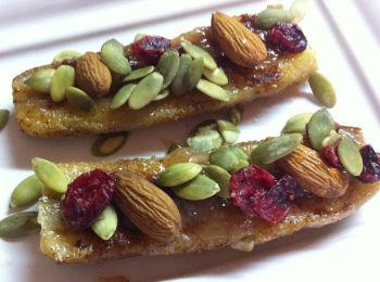 - Pečene banane posuti brusnicama, bademima i golicom.